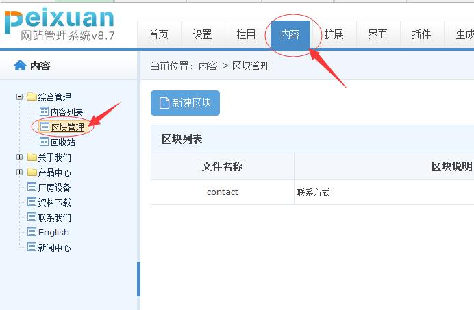 选择内容,左边的导航栏上的综合管理下面的区域管理